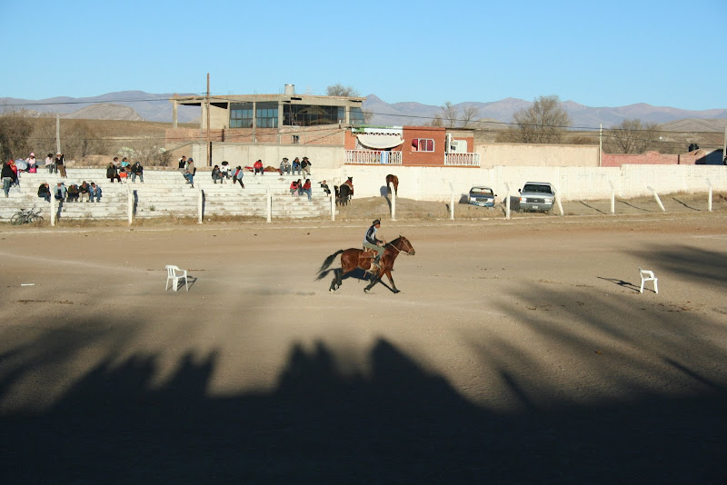 Ter voorbereiding van onze Boliviaanse treinreis zetten we koers naar de grens. Omdat de accomodatie aan de deze kant zogezegd beter is slapen we nog één nachtje op Argentijnse bodem (3400m hoog). Behalve een uiterst boeiende paardenkampioenschap waarbij de stoelendans tot grotere hoogten wordt verheven en er tussen plastiek stoelen moet gereden worden is er in La Quiaca niks te doen. We steken dus met toestemming even illegaal de grens over voor het kopen van tickets en springen in het naburige Boliviaanse Villazon ´s avonds, nu wel legaal, op de trein richting Uyuni, the place to be voor zoutfanaten.