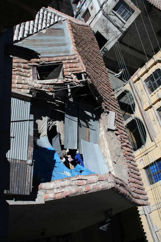 Hoewel het dus eerst niet de bedoeling was kwamen we door de blokkades toch in Potosi terecht. Geen probleem, hierdoor werd ook deze stad met een blitsbezoek vereerd. Potosi leeft en leefde vooral, of eigenlijk haast alleen, van de zilvermijn en een naburige berg. Op het ogenblik is het zilver echter uitgeput en worden er enkele nog enkele andere mineralen gevonden. Geologen voorspellen echter dat ook dit niet lang meer gaat duren en wijzen op het risico dat de berg binnen afzienbare tijd in elkaar stuikt door de vele gangen. Hoewel je de mijn dus kan bezoeken zijn wij er wijslijk uit gebleven. De stad zelf is een perfecte illustratie van de evolutie van de mijn. Prachtige gebouwen uit de tijd van de grote rijkdom en veel teloorgang in de laatste decennia.